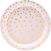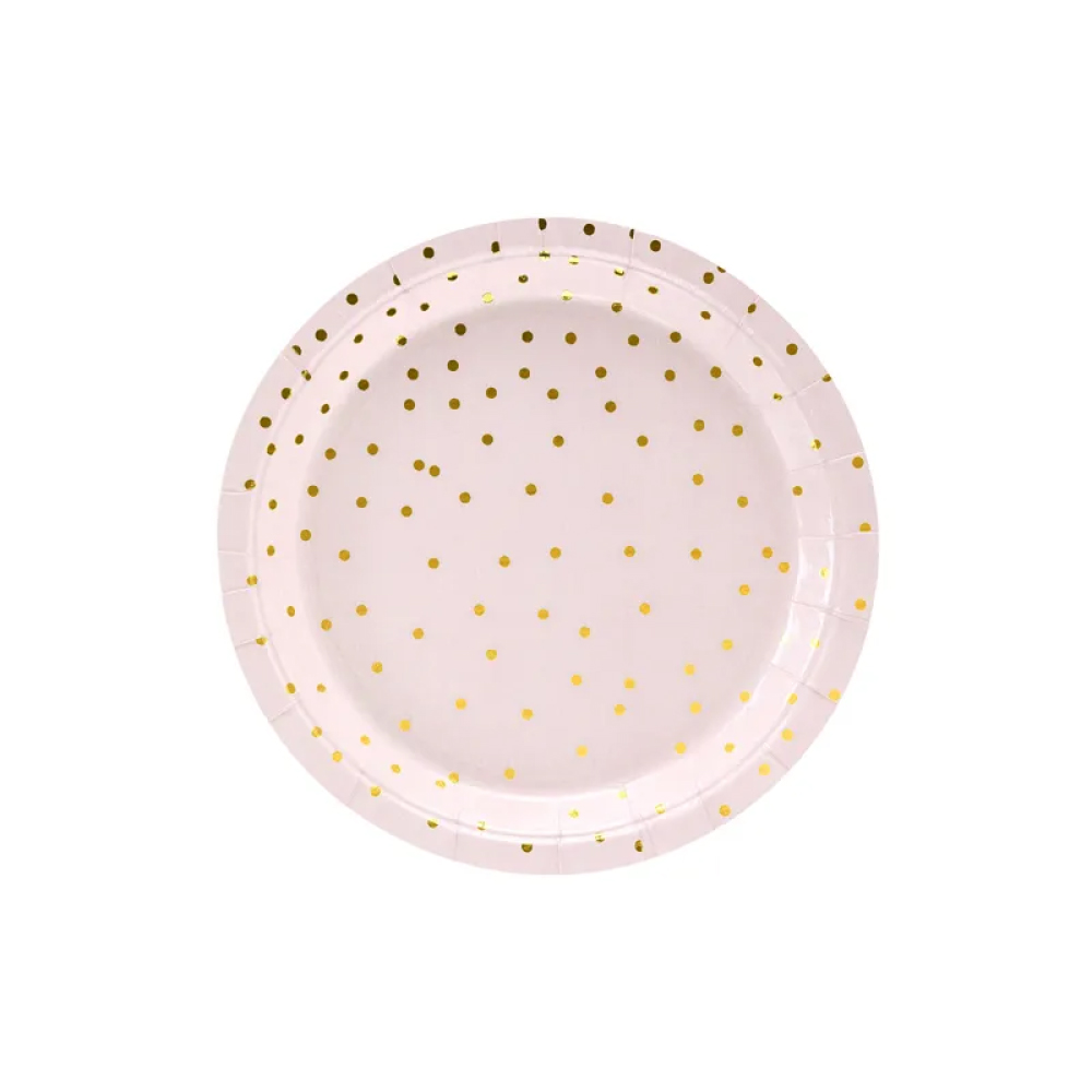 Πιάτα χάρτινα ροζ με χρυσό πουά 18cm 6τεμ PartyDeco