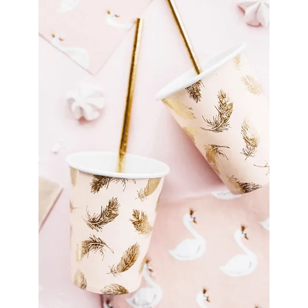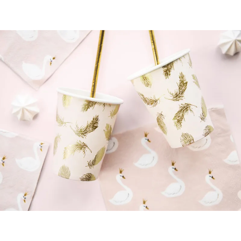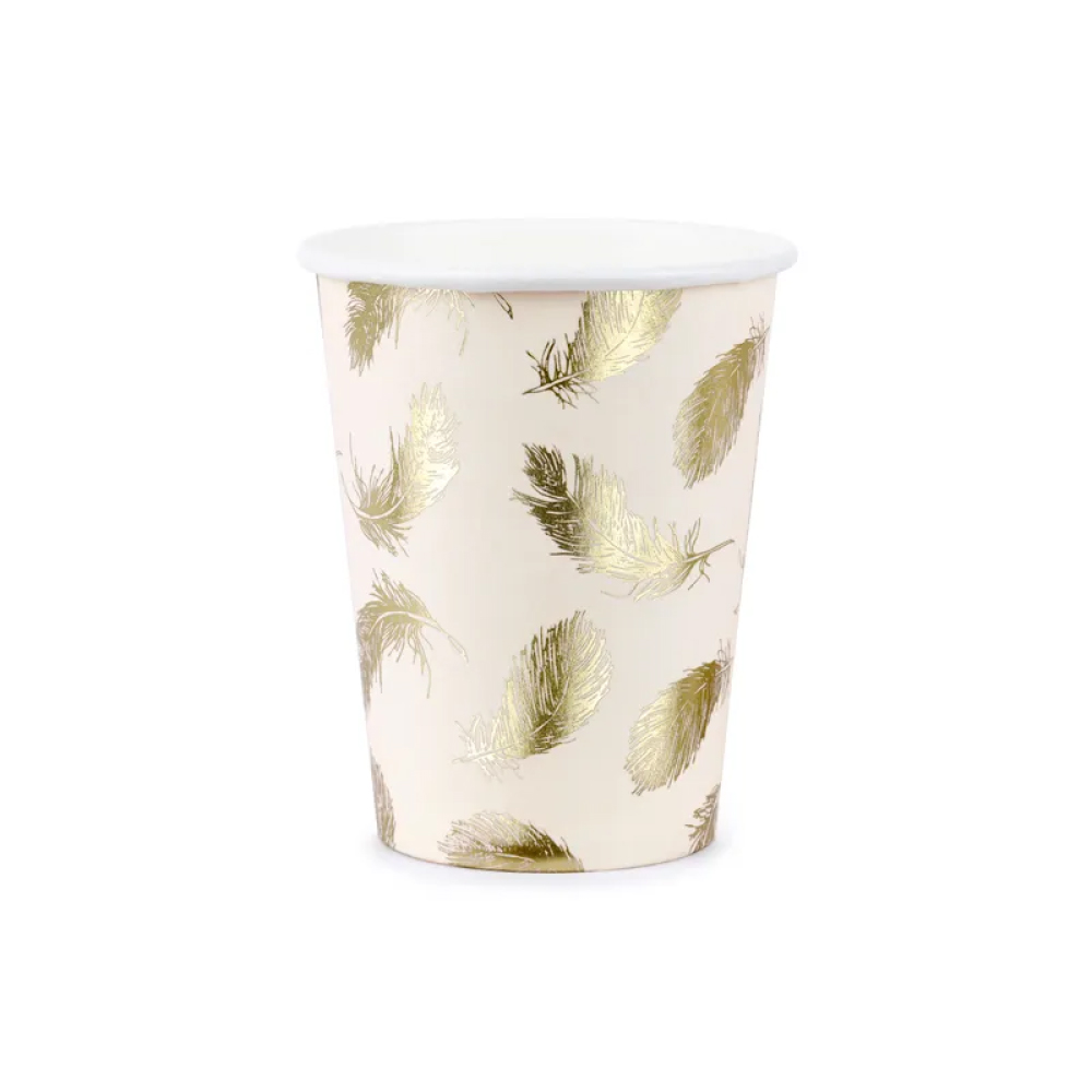 Ποτηράκια χάρτινα με φτερά χρυσά 220ml 6τεμ PartyDeco