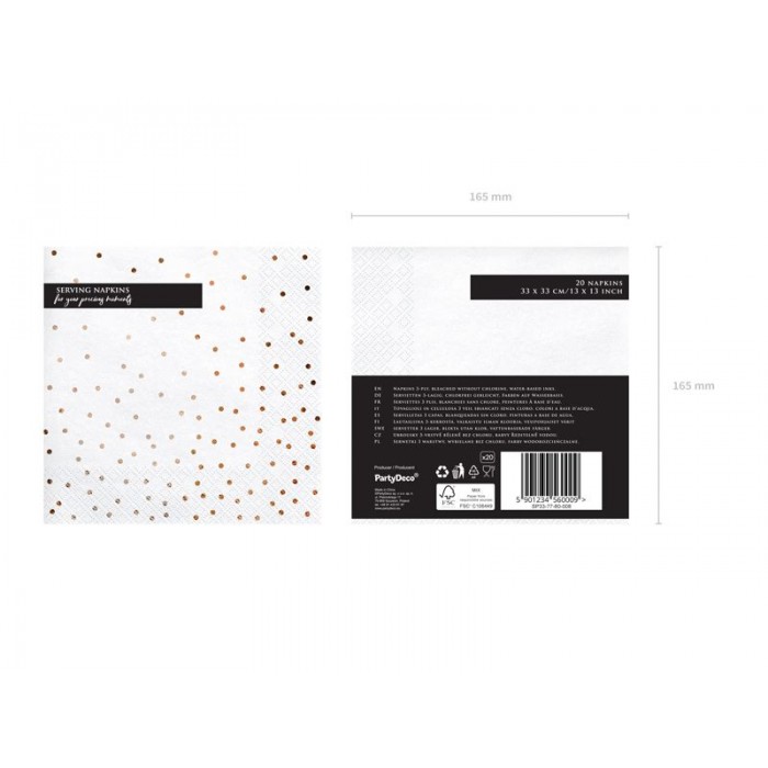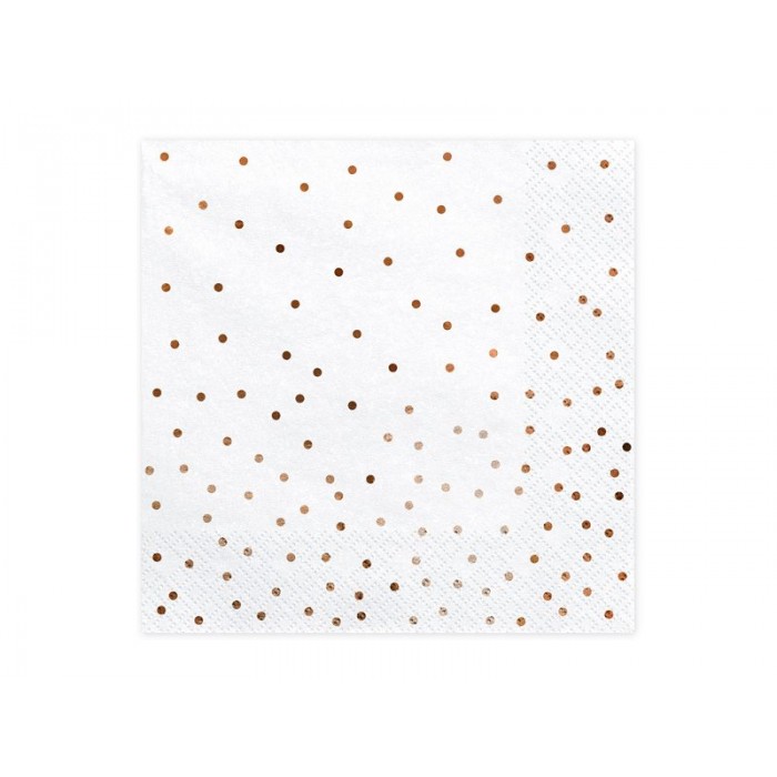 Χαρτοπετσέτες λευκές πουά ροζ χρυσό 20 τεμ για το πάρτυ σας!