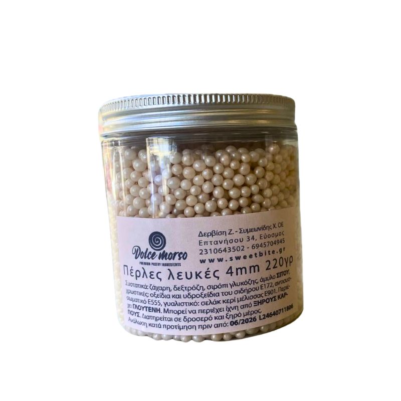 Πέρλες λευκές περλέ βρώσιμες 4mm 220γρ Sweetbite
