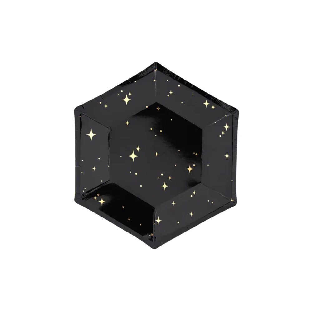 Πιάτα χάρτινα μαύρα με χρυσά αστεράκια 20cm 6τεμ PartyDeco