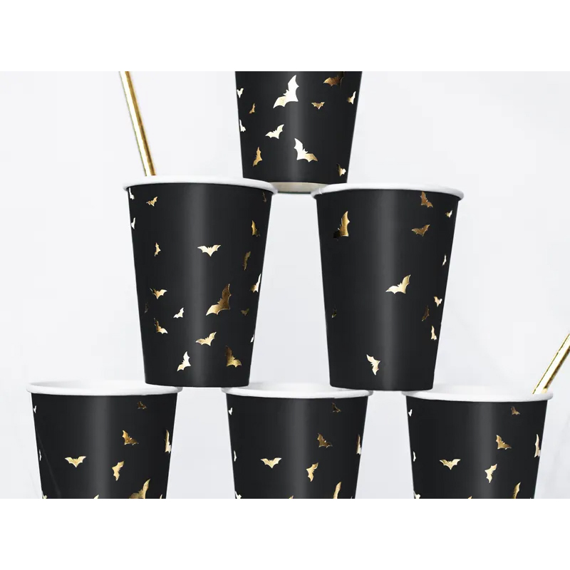 Ποτήρια χάρτινα μαύρα trick or treat 220ml 6τεμ χάρτινα PartyDeco