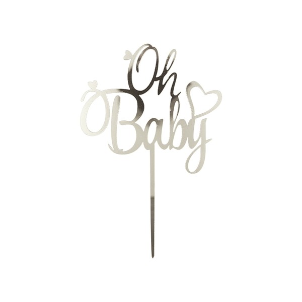 Topper Oh Baby με καρδιά σκέτο ασημί 15cm