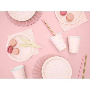 Πιάτα χάρτινα ροζ με χρυσό πουά 18cm 6τεμ PartyDeco