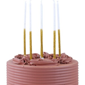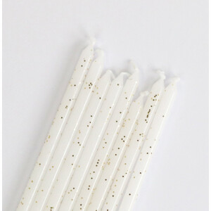 Κεριά λευκά με χρυσό glitter 18cm 16τεμ PME