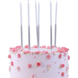 Κεριά λευκά με ασημί glitter 18cm 16τεμ PME