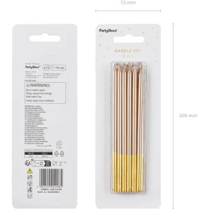 Κεριά ροζ χρυσό 14cm 12τεμ PartyDeco