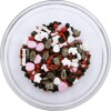 Συστατικά: Δεξτρόζη, ζάχαρη, άμυλο καλαμποκιού, δεξτρίνη, φοινικέλαιο,γλυκόζη, αντισυσσωματικό (άλατα λιπαρών οξέων Ε470b), χρωστικές: ριβοφλαβίνη Ε101, φυτικός άνθρακας Ε153, ανθοκυανίνες Ε163, ερυθρό Allura AC Ε129, ταρτραζίνη Ε102, λαμπρό κυανούν FCF Ε133, συμπύκνωμα ραπανιού, συμπύκνωμα μήλου, συμπύκνωμα φραγκοστάφυλλου, τροποποιημένο άμυλο, αρωματική ύλη, πηκτικό (αραβικό κόμμι Ε414, κόμμι ξανθάνης Ε415), γυαλιστικό (σελάκ Ε904, κερί καναούμπα Ε903), γαλακτωματοποιητής (λεκιθίνη Ε322(ΣΟΓΙΑ)), πρωτεΐνες ΣΟΓΙΑΣ ερυθρό Allura AC Ε129.